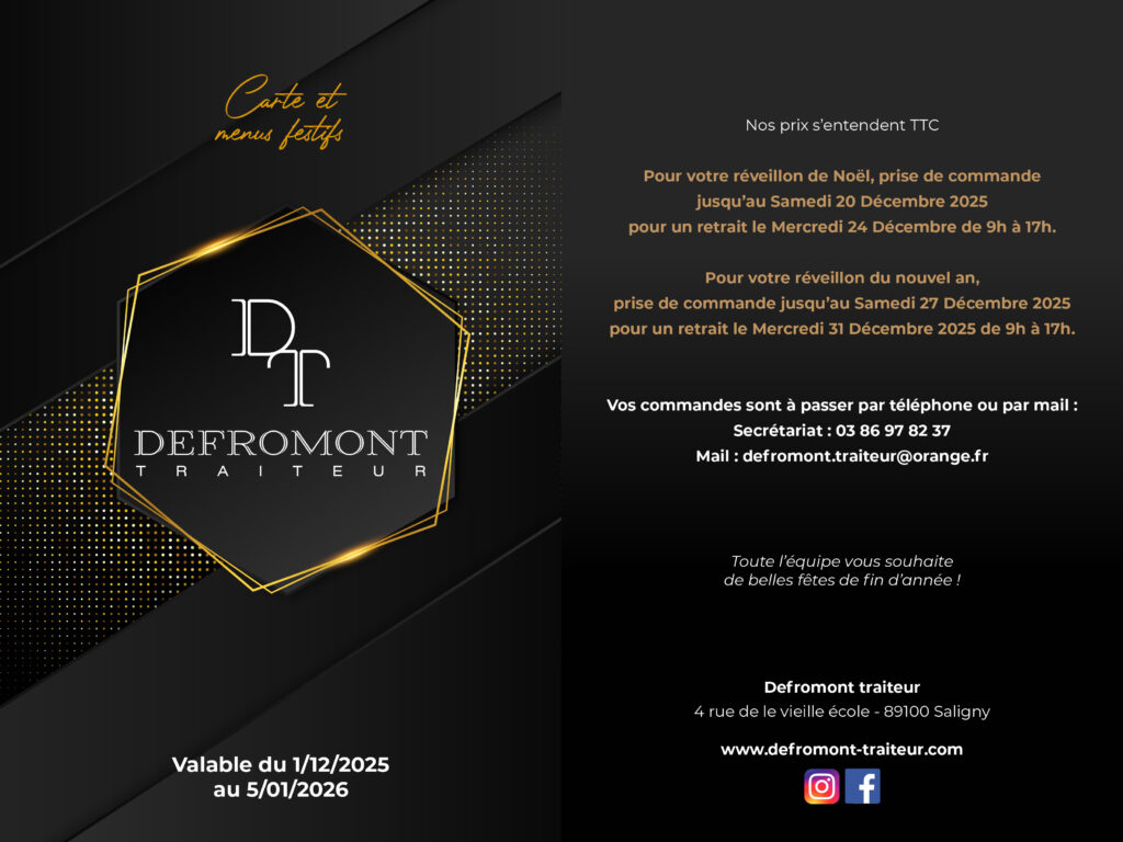Pour votre réveillon du nouvel an, prise de commande jusqu’au Samedi 27 Décembre 2025 pour un retrait le Mercredi 31 Décembre 2025 de 9h à 17h.